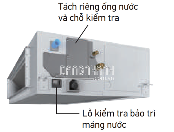 – Máy có áp suất tĩnh ngoài cao có thể điều chỉnh được phù hợp với các vị trí khó khăn, máy bố trí xa miệng cấp gió. Giúp phân bố gió lạnh đều cho tất cả các vị trí của không gian làm lạnh rút ngắn thời gian làm lạnh và phân bố lạnh đều trong không gian