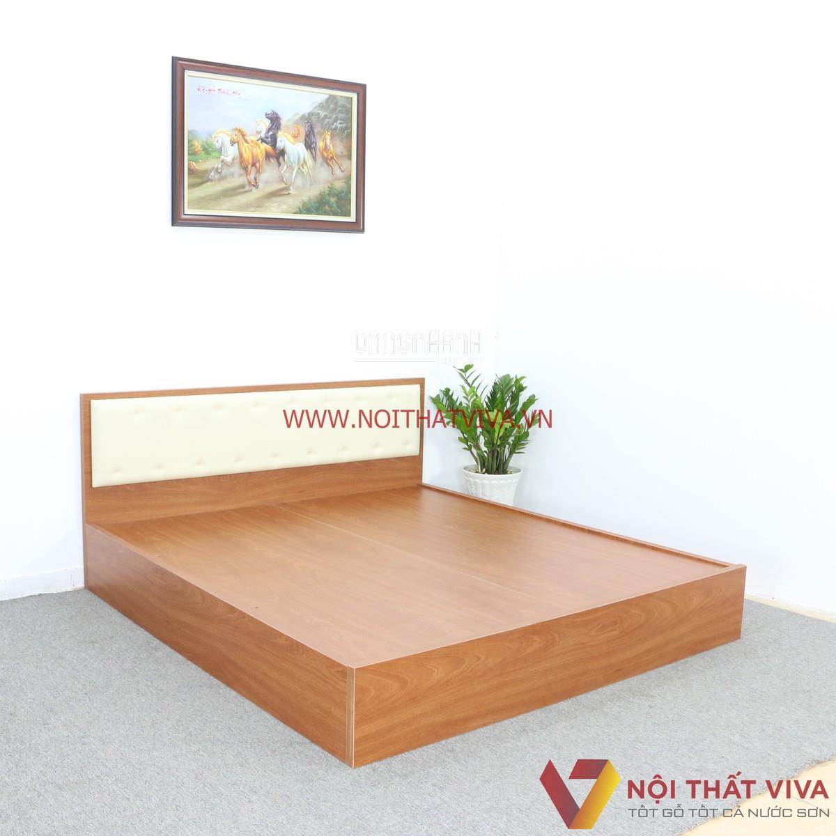 Giường Gỗ Công Nghiệp Giá Rẻ Màu Xoan Đào Có Đầu Nệm Kem Đẹp Hiện Đại
